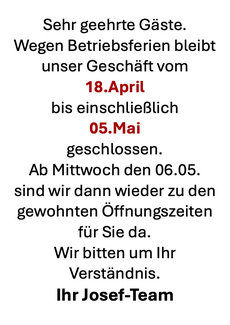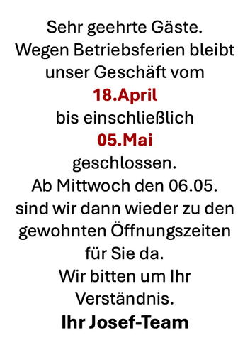 Gastfreundschaft in südländischer, familiärer Atmosphäre hat bei uns eine lange Tradition. Seit den 80er-Jahren sind wir im Südhessischen Ried nunmehr in zweiter Generation erfolgreich. Wir verstehen uns als Restaurant "mit Namen und Gesicht". Persönlichkeit und Respekt gegenüber jedem Gast sind uns ein persönliches Anliegen. Deswegen kommen unsere Gäste "zum Josef". Auch wenn dieser nicht mehr an vorderster Front steht, sind Sie weiterhin Gast bei der Familie Giordano. Der Name "Bei Josef" hat seit Jahrzehnten Tradition und wird uns immer erhalten bleiben.