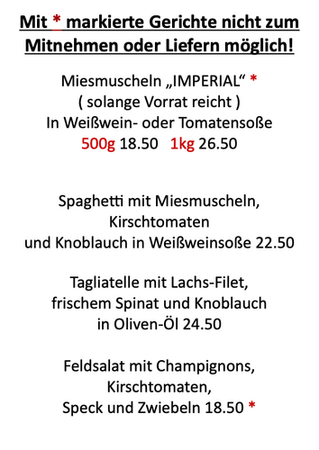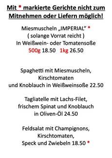 Selbstverständlich können Sie unser Speiseangebot auch bei sich zu Hause genießen. Eine spezielle Karte finden Sie unter „Heimservice“.